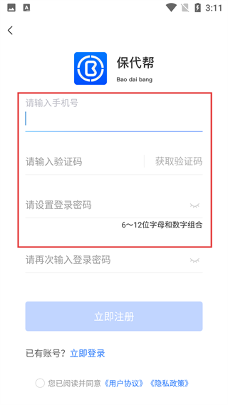 4、注册页面需按顺序填写【手机号】,接着获取并输入【验证码】,再设置由6~12位字母与数字组合而成的【登录密码】,全部完成后就能提交注册。