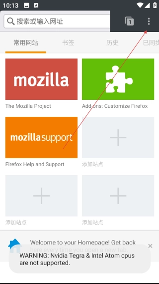 在浏览器的首页,点击右上角的三点图标,就能打开功能操作菜单。