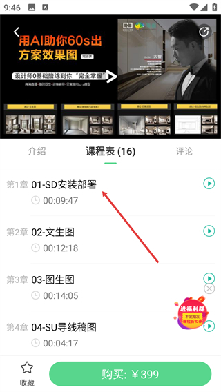 4、进入课程表页面后,找到你想学习的具体章节(例如“第1章 01-SD安装部署”),点击该章节对应的播放按钮,就能开始学习此章节的内容了。