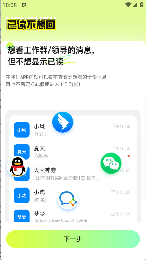 使用该软件查看消息时,不会显示已读状态,能在对方毫无察觉的情况下,预先查看重要信息。