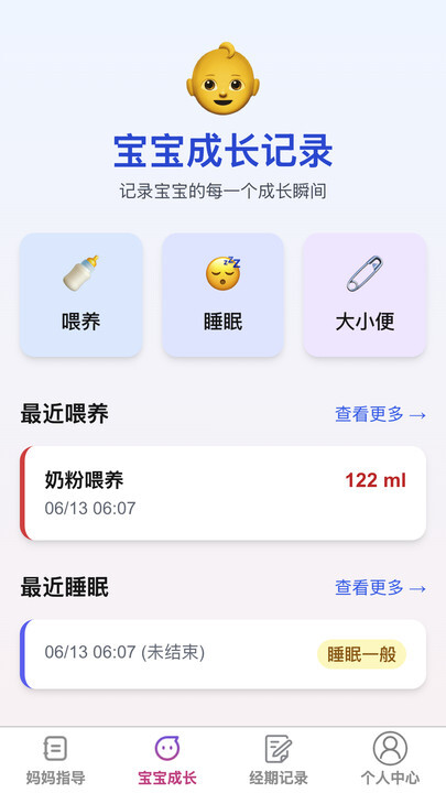 3、整合喂养记录、睡眠监测、成长曲线等各类育儿工具,助力家长更便捷地管理孩子的日常护理事务。