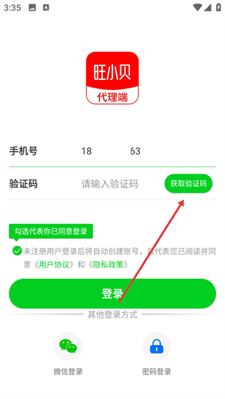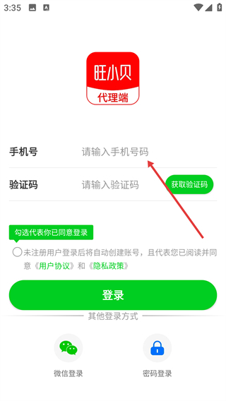 2、在验证码登录界面输入手机号码。