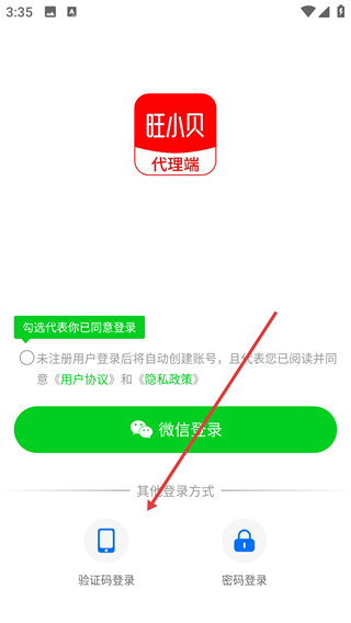 1、点击【验证码登录】选项,进入验证码登录界面。