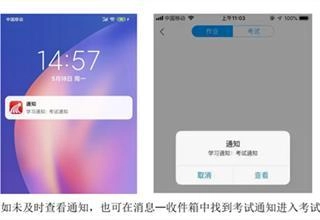 2、发布试卷:监考老师发布试卷后,“学习通”客户端会弹出如下提示。