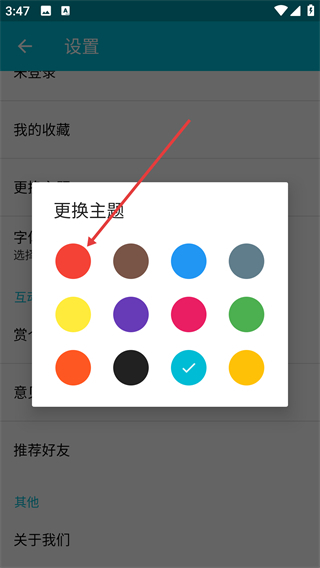 3、在主题选择弹窗中选择目标主题颜色,如红色。