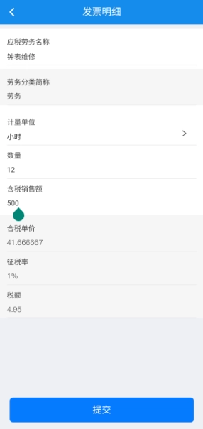 4、然后填写发票明细后点击【提交】按钮