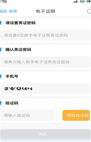 3、添加操作完成后回到电子证明页面,“无犯罪记录证明”已成功添加。选中该证明,进入密码设置界面(首次使用应用时需进行设置)。按照提示输入亮证密码与验证码完成设置。