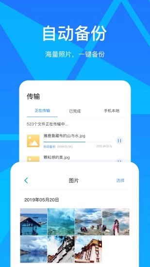 3、相册自动备份功能可释放存储空间,一键即可备份所有照片与视频,支持流量和WiFi两种备份模式,海量照片能轻松存储,有效释放设备空间。
