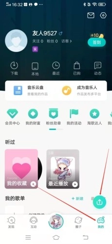 1、进入5sing原创音乐后,首先点击右下角“我的”,在点击右下方“↑”按钮;