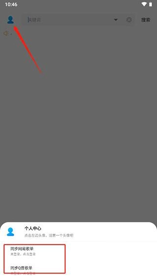 1、点击左上角进入个人中心,在下方即可找到同步网易歌单与Q音歌单的选项。