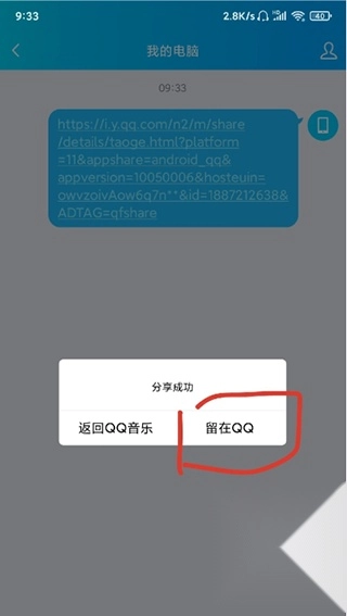 4、分享到电脑成功之后,请选择留在QQ;
