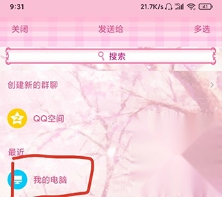 3、选择分享到我的电脑;
