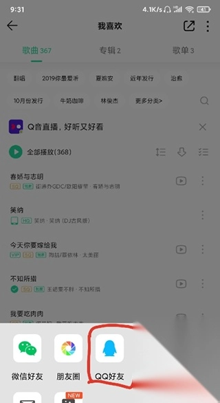 2、选择分享到QQ好友;