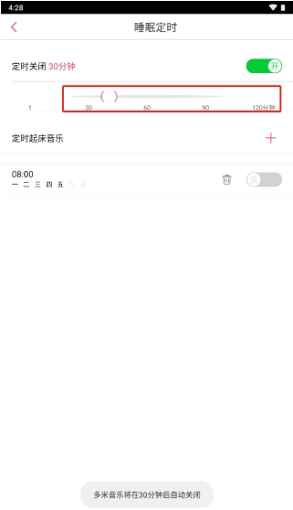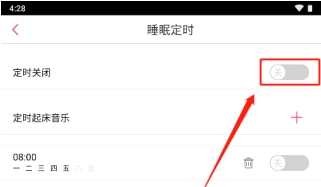 3、进入睡眠定时页面点击图示位置以开启该功能。