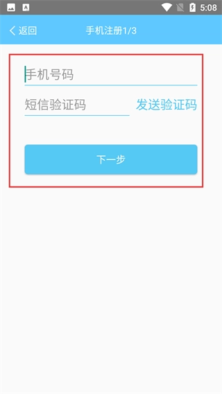 4、进入注册的下一步页面后,需要输入【号码】,点击【发送验证码】并填写收到的验证码,完成这些操作后点击【下一步】,即可继续推进注册流程。