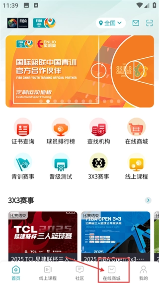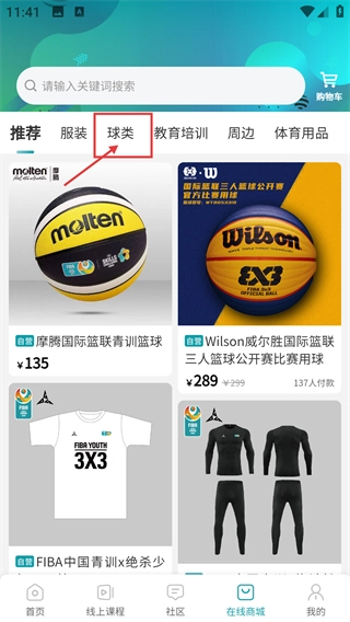 1、在主界面底部的导航栏中找到【在线商城】的入口并点击,进入商城页面后,就能浏览各类篮球相关的商品。