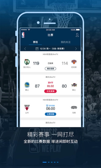 NBA联盟通已正式上线,用户可通过比赛页面中的引导按钮,快速进入每场比赛的视频直播界面。