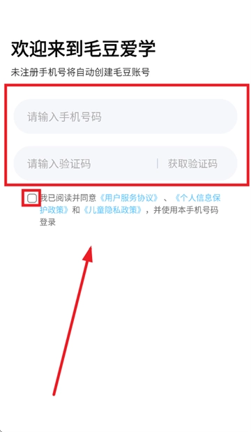 进入登录页面后,先输入手机号和验证码,接着勾选“我已阅读并同意《用户服务协议》《个人信息保护政策》和《儿童隐私政策》”,然后选择用该手机号码登录,点击登录按钮即可。需要注意的是,若使用的是未注册过的手机号,系统会自动为你创建毛豆账号。