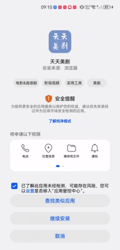 3、第三步,勾选“已了解此应用未经检测……”这一选项,随后点击“继续”按钮。