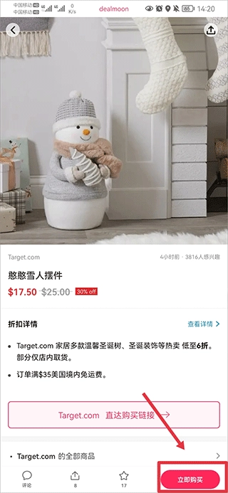 2、进入商品详情页面后,直接点击“立即购买”,系统会跳转至国外购物软件完成下单流程;需要注意的是,国内用户使用该国外软件时需通过科学上网方式访问。
