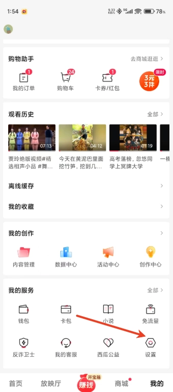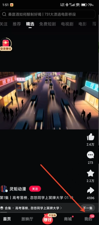 稍作等待,待视频缓存完毕后,点击右下角的【我】按钮,即可进入个人界面。
