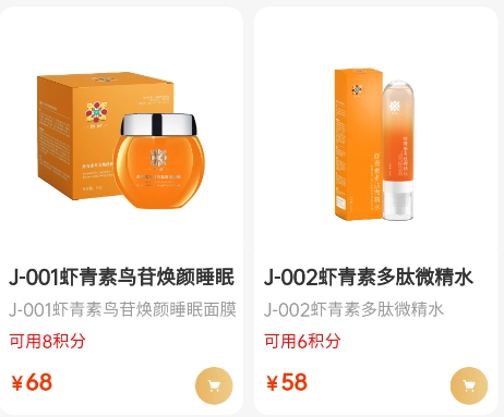 专区分类一目了然——设有「虾青素食品」「化妆品」「健康食品」「健康知识」等板块,可直接跳转进入;