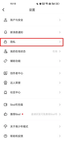 3、在设置界面中,找到第三个选项“隐私”并进入。