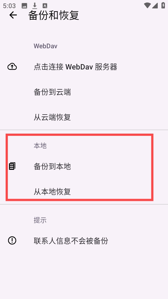 5、最后点击“备份和恢复”选项,即可直接从本地恢复文件。