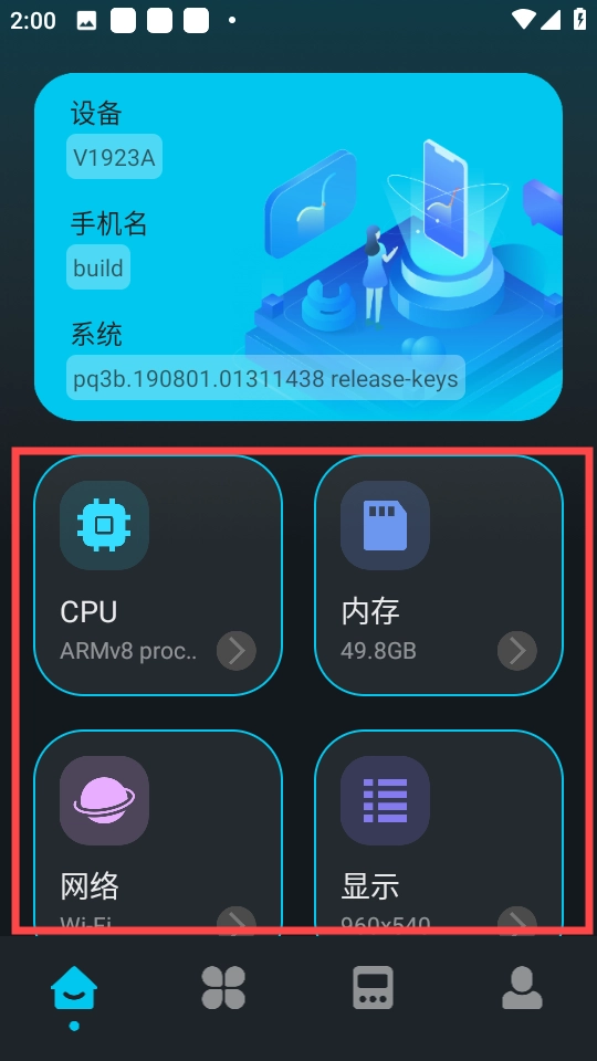 2、首页包含了cpu,内存,网络,显示等版块。