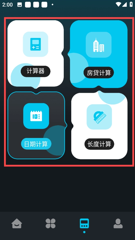 4、点击下方的图标,我们可以看到计算器、房贷计算、长度计算等功能。