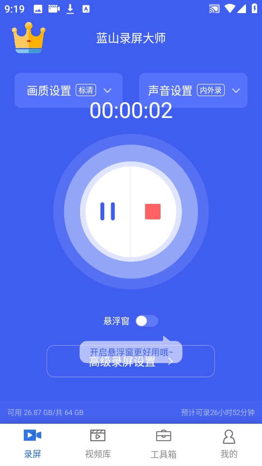蓝山录屏大师能轻松录制视频、画面及其他各类内容,你可以自由调整清晰度、声音、方向等参数,还支持悬浮框录屏或自定义设置录制内容,有需要的朋友快来试试吧。