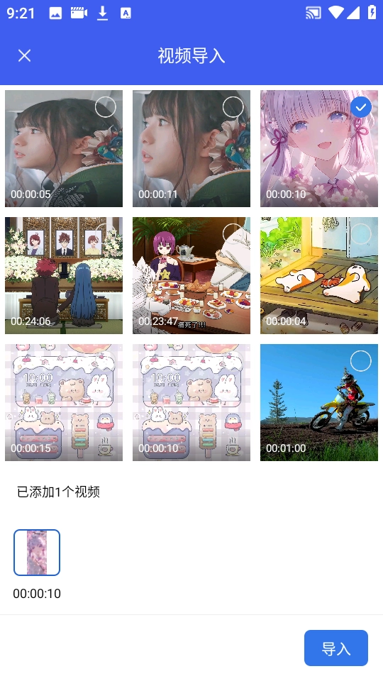 2、点击“视频压缩”,从相册导入一个视频内容。