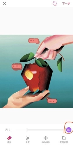 完成操作后,目标位置会出现红色覆盖效果,此时点击右下角的“GO”按钮,就能选择遮盖的具体方式了。