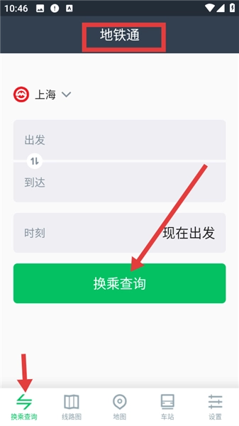 地铁通的界面支持填写出发站点、到达站点以及具体时刻,选择“现在出发”后点击换乘查询,系统就会自动规划行程。界面底部还设有线路图、地图等导航入口,借助它查询地铁换乘,出行规划既清晰又快捷。