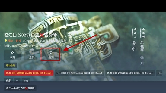 点击影片后,要是播放出现卡顿的情况,可以点击“换源”按钮来切换线路。