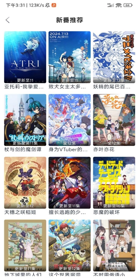 2、主页汇集了新番推荐、国创、剧场版ova等内容。