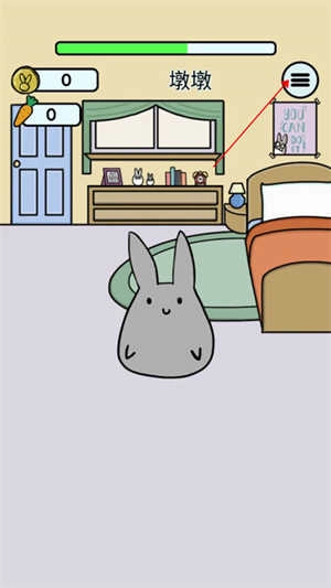 2)用它来喂养你的兔子,以此提升你的快乐度。这一功能仅能在快乐计模式下使用,该模式可通过“设置”开启(具体可参考如何使用快乐计模式的说明)。进入该模式后,若左上角显示的胡萝卜数量为一个或更多,你就可以用手指