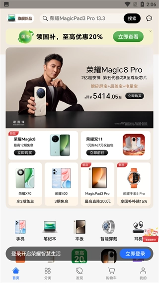 1、荣耀商城汇集了品类丰富的荣耀品牌产品,涵盖手机、平板、智能穿戴设备等多个品类,能够满足用户的多样化需求。