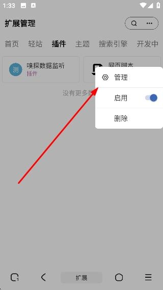 2、进入插件管理页面后,找到并选中目标插件(例如【网页脚本】),点击该插件后选择【管理】选项,即可进入网页脚本的管理页面。