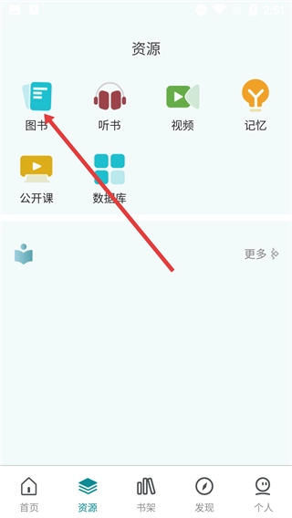 2、在资源页面,点击【图书】入口,即可进入图书资源列表页。