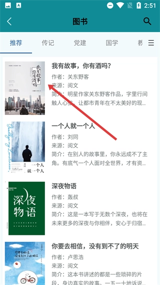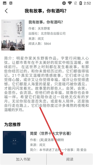 3、在图书列表页面,挑选一本感兴趣的图书,比如《我有故事,你有酒吗?》,点击该图书即可进入其详情页面。
