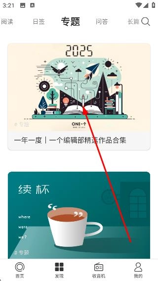 2、进入发现页面后,选择【专题】分类,即可查看该分类下的专题内容。