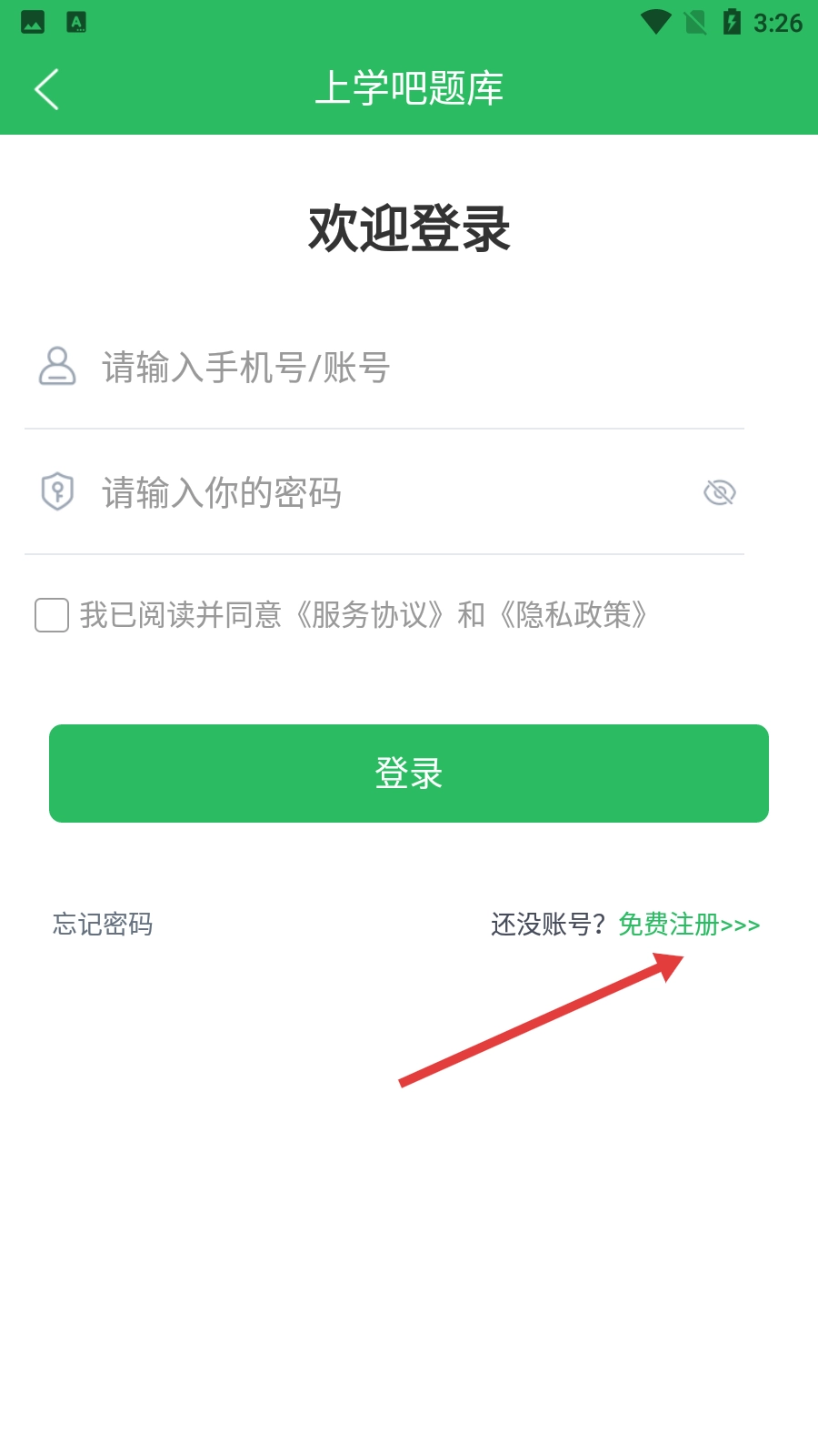 在上学吧题库的登录界面,你可以选择【微信快捷登录】或者【号/账号登录】这两种方式,勾选同意相关协议后就能完成登录操作。
