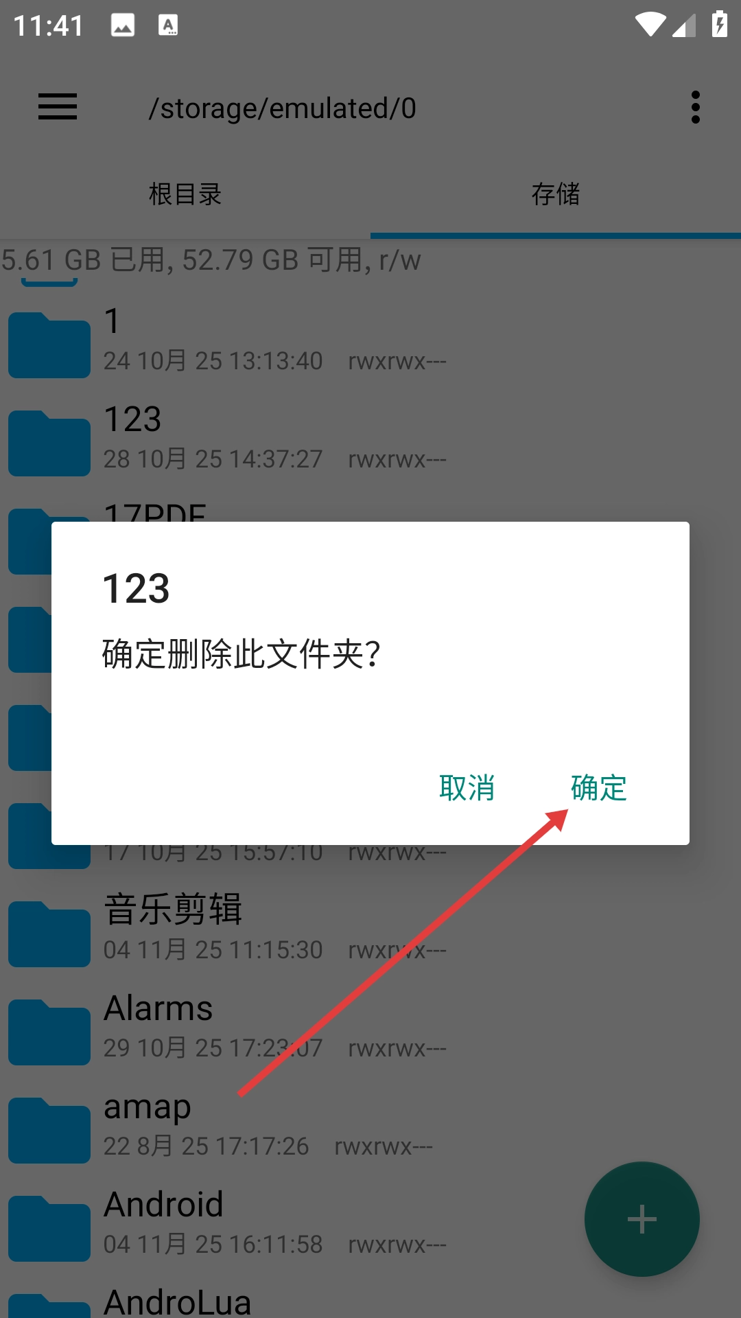 2、在文件夹操作界面点击删除按钮后,会弹出删除确认对话框。