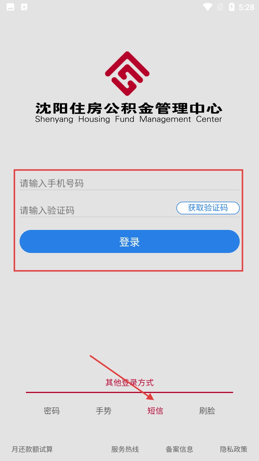 3、若选择短信登录,需先输入手机号码,接着获取并填写验证码,最后点击【登录】按钮即可完成登录操作。