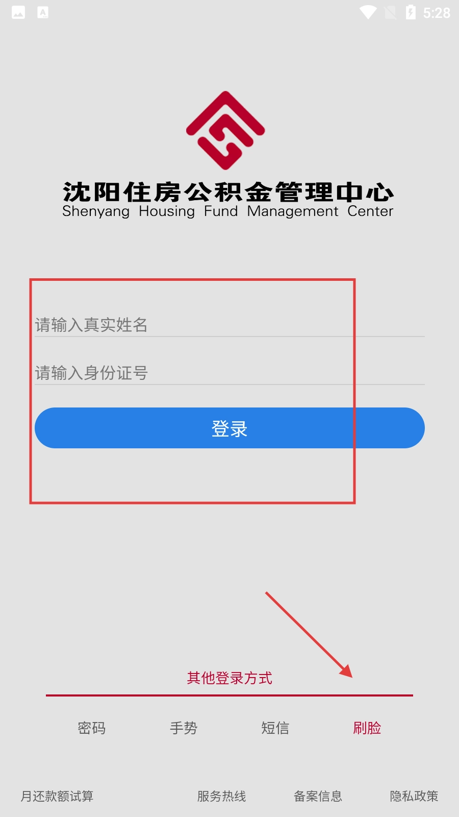 4、当选择刷脸登录方式时,需输入真实姓名与身份证号,点击【登录】按钮后完成刷脸验证,即可结束登录流程。