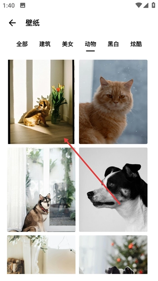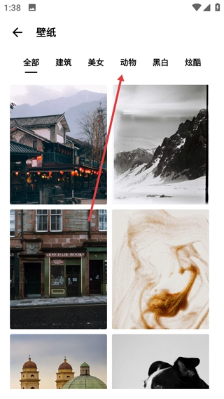 2、在壁纸选择页面点击【动物】分类,查看动物类壁纸。