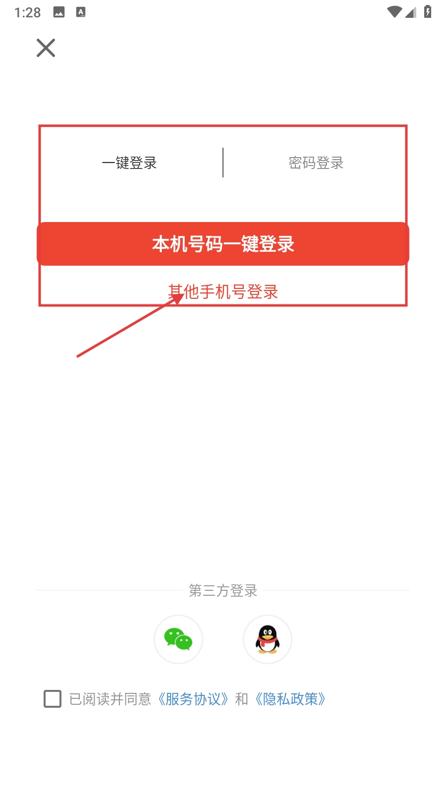 2、在登录界面点击【其他号登录】选项,即可进入账号登录页面。