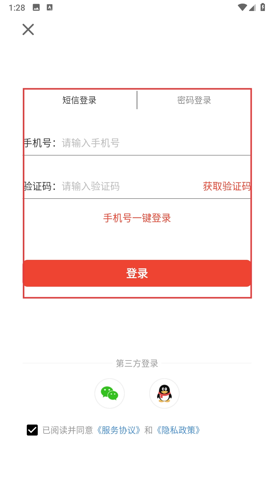 在账号登录页面,可选择【短信登录】选项,输入账号和验证码后,点击【登录】按钮即可完成登录操作。