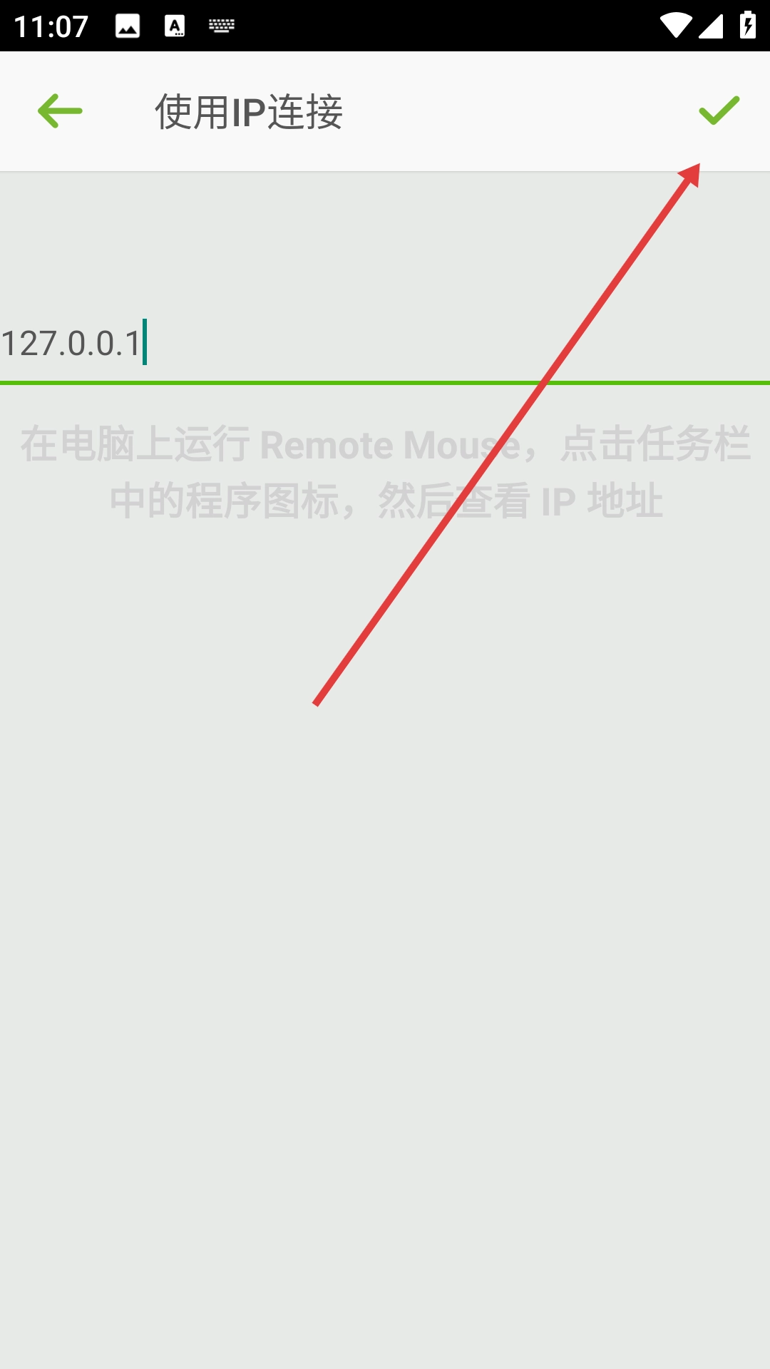 4、输入完成后,点击右上角的绿色对勾按钮,即可完成IP连接设置。